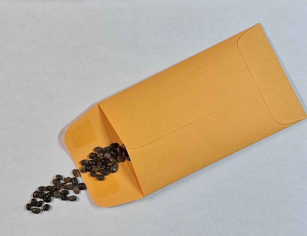 Cleaned and dried seeds should be stored in paper, not plastic. Coin envelopes work well. Label each envelope with plant name, date, and a description. Store the envelopes in a box in a cool, dry place. Avoid plastic storage containers; if the seeds are not totally dry, they may develop mold.